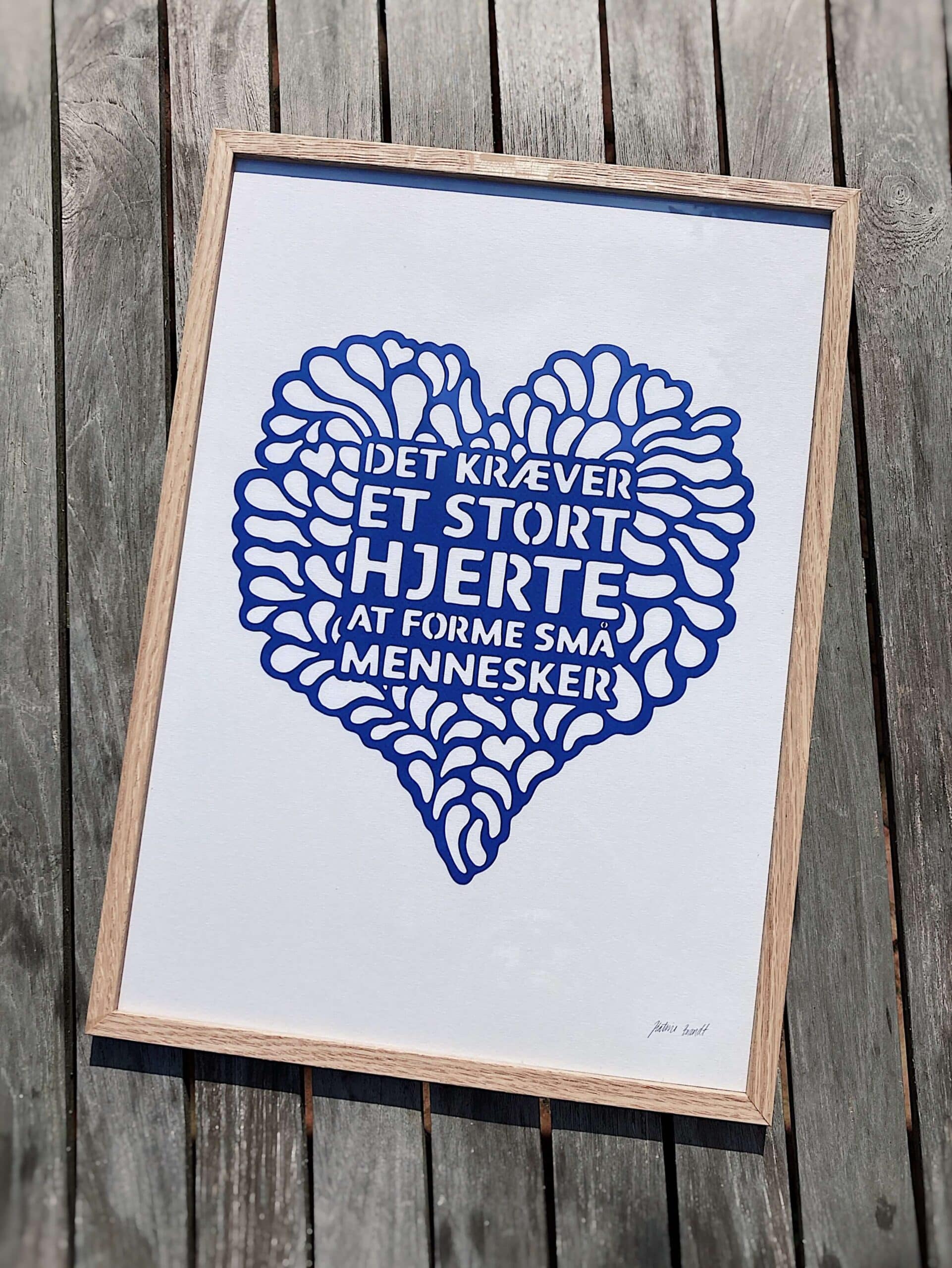Klippet skæres på baggrund af min håndskårne skabelon og har derfor samme karakter som et håndskåret, selvom jeg skærer det på maskine. Herefter klæber jeg det på baggrund. Alt laves hjemme på mit lille værksted og jeg står selv for hele processen for at sikre, at kvaliteten er i top.