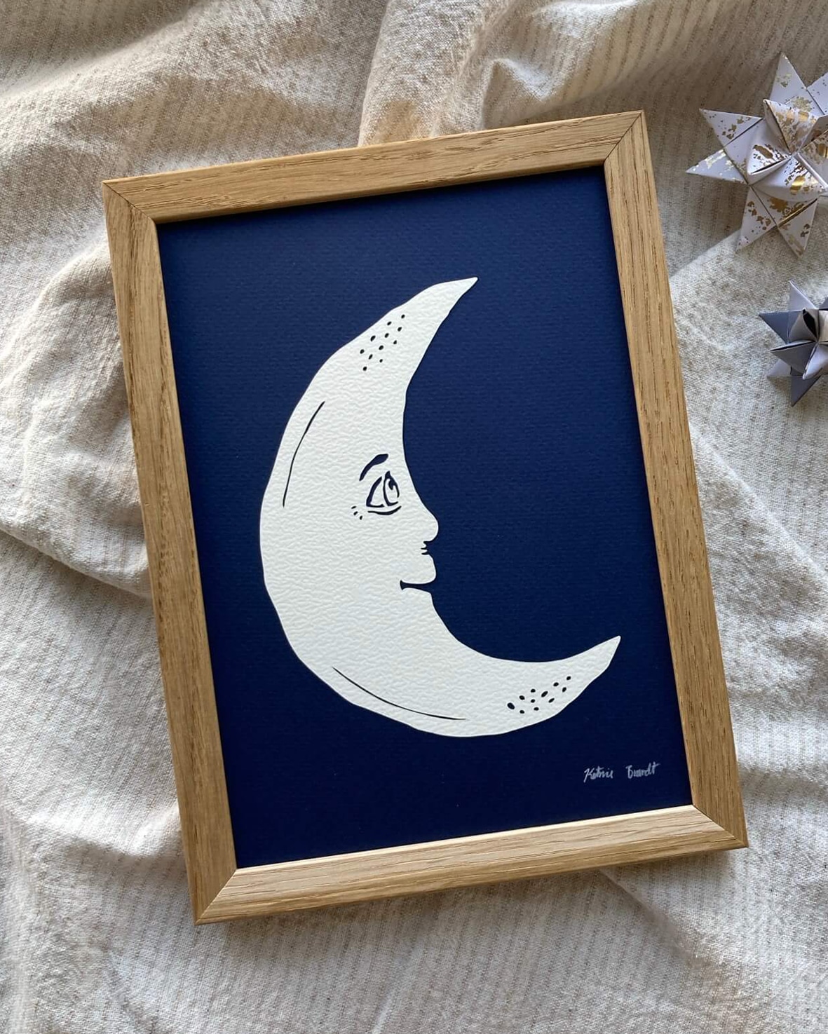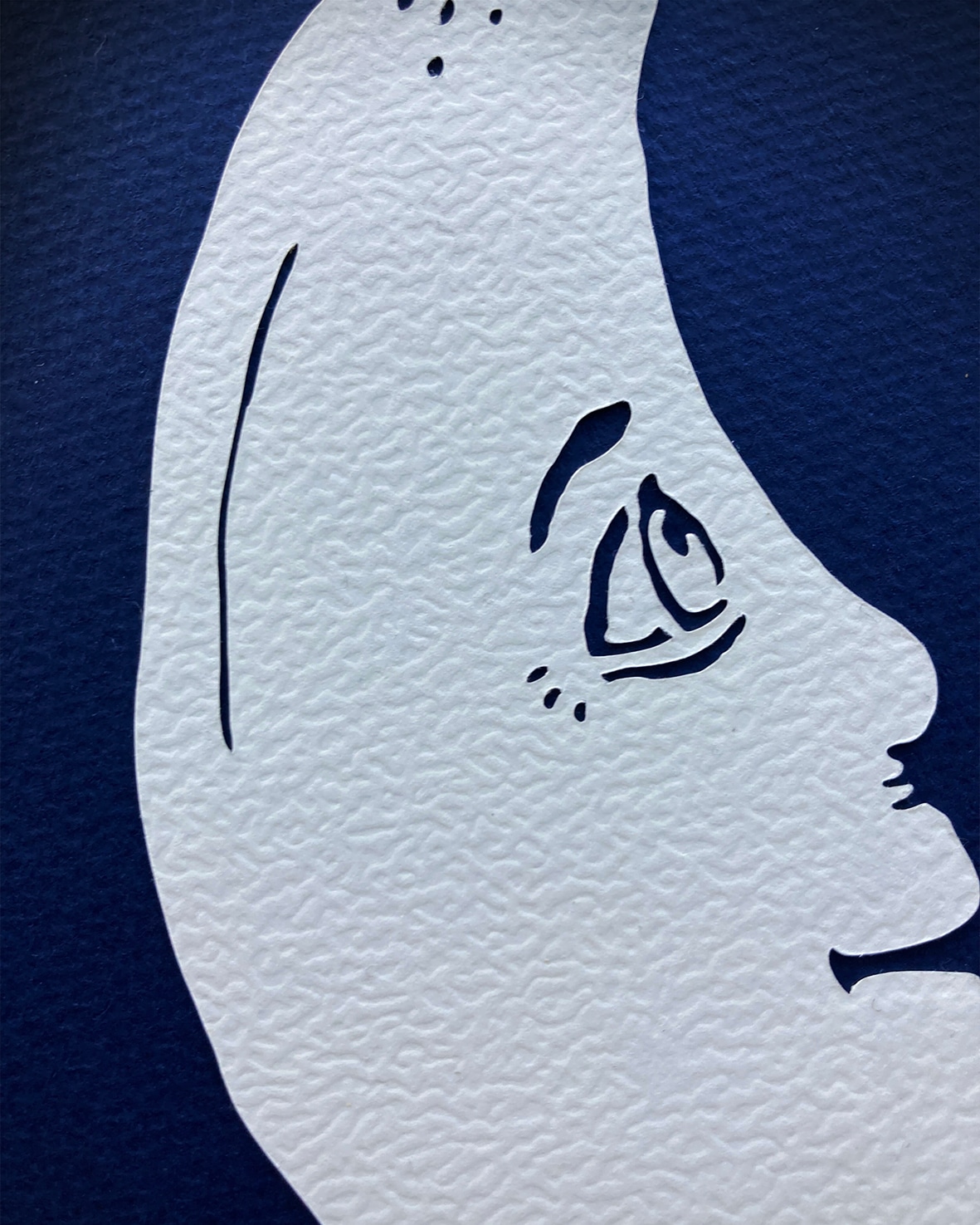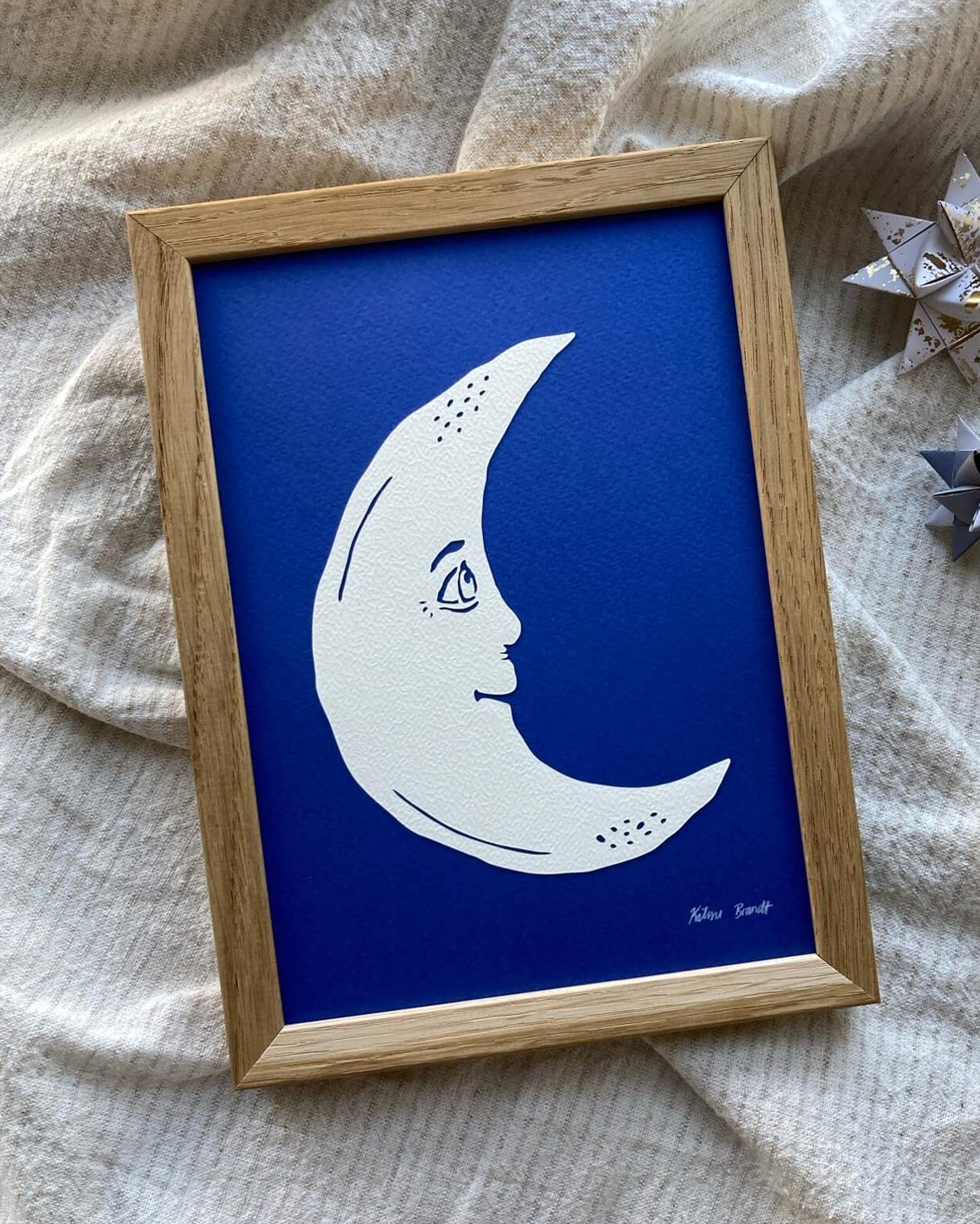 Klippet skæres på baggrund af min håndskårne skabelon og har derfor samme karakter som et håndskåret, selvom jeg skærer det på maskine. Herefter klæber jeg det på baggrund. Alt laves hjemme på mit lille værksted og jeg står selv for hele processen for at sikre, at kvaliteten er i top.