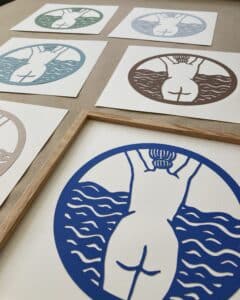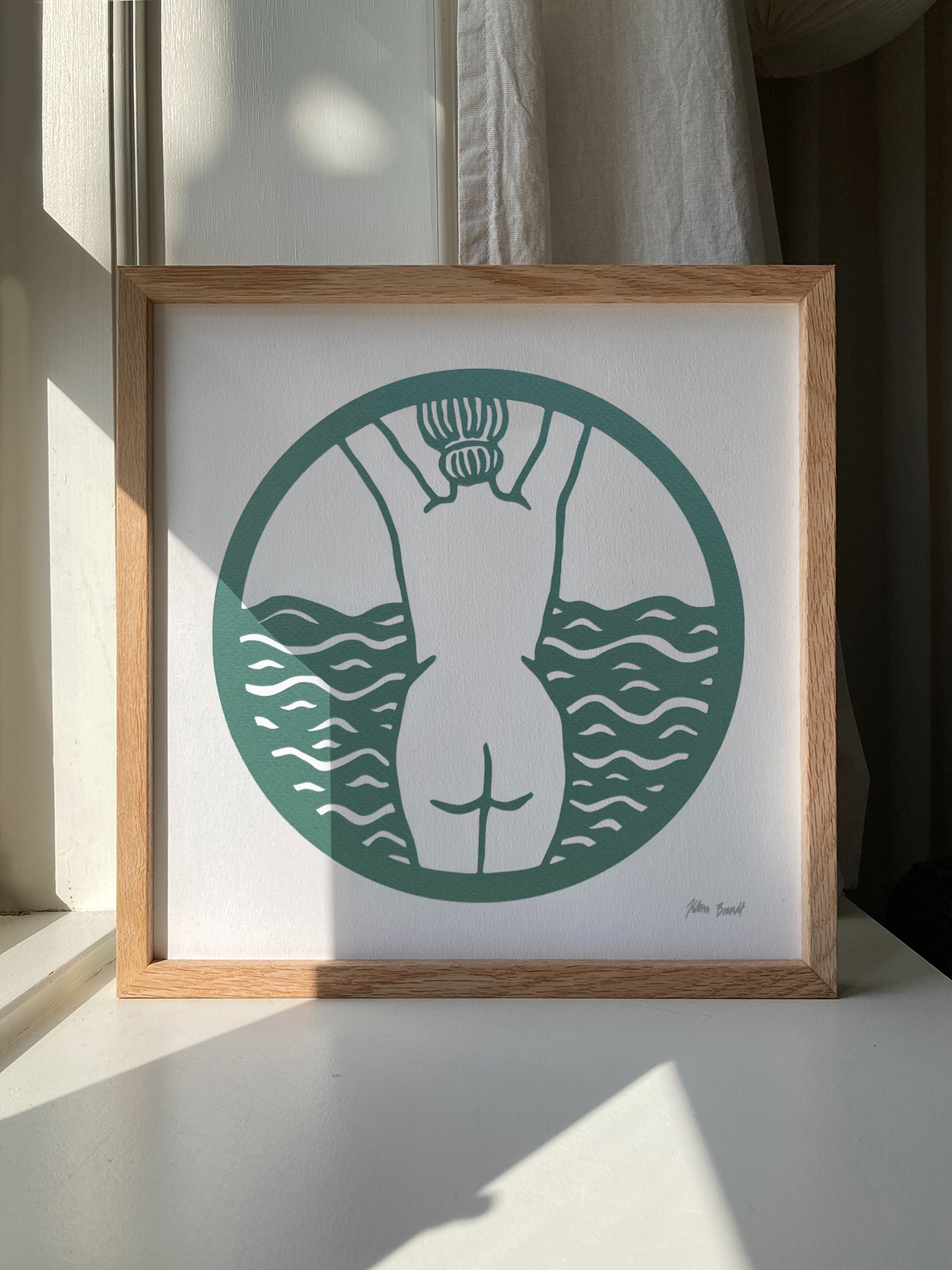 Klippet skæres på baggrund af min håndskårne skabelon og har derfor samme karakter som et håndskåret, selvom jeg skærer det på maskine. Herefter klæber jeg det på baggrund. Alt laves hjemme på mit lille værksted og jeg står selv for hele processen for at sikre, at kvaliteten er i top.